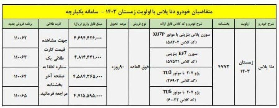 شرایط جدید فروش خودرو دنا پلاس شهریور 1403